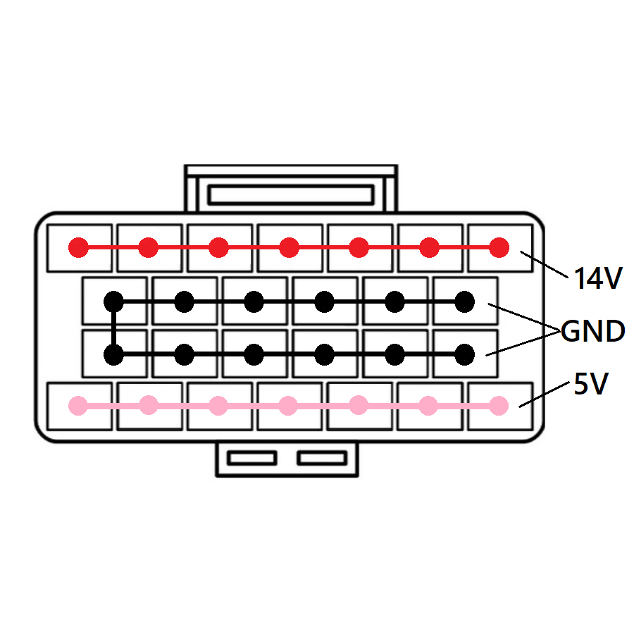 Pin No,1~7;12V、Pin No,8~19;GND、Pin No,20~26;5V